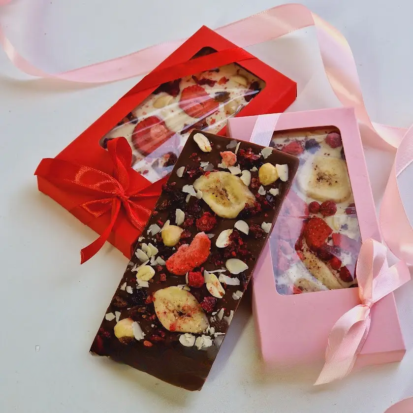 🍫Авторська шоколадна плитка 🍫 з натуральними ягодами 🍓🫐, фруктами 🍌 та горіхами 🌰 у стильній подарунковій коробці 🎁🎀.