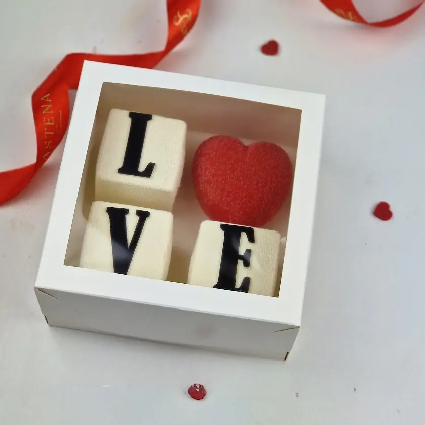 Стильний набір мусових тортиків у формі літер L O V E та серця — це поєднання легкої текстури, вишуканого смаку й мінімалістичного дизайну 🍰 🎁